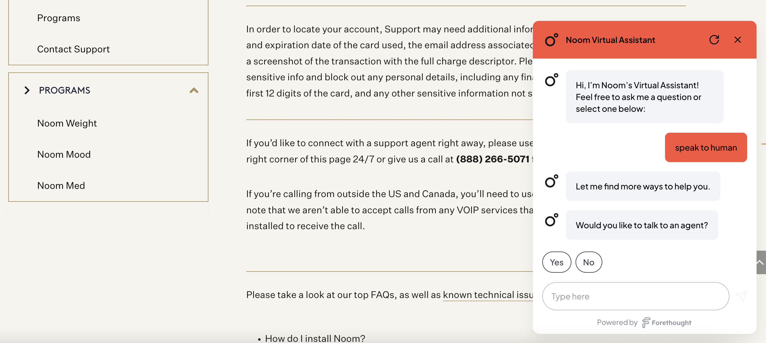 You can contact the Noom Customer service team via live chat, or phone. The phone and live chat can be used for faster turnaround time and have less than 3 minutes of waiting time. Their customer service is available from 12pm to 3am London time (times converted to your local timezone for comfort)